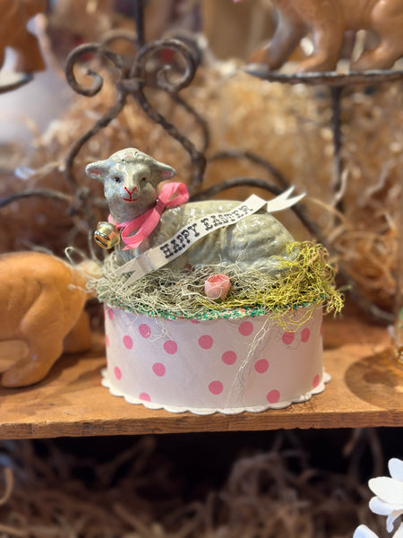 We made a mold from a fragile antique lamb, and the results were an almost better than the original! We hand-cast and paint each one and nest them on an oval box for a one-of-a-kind gift.